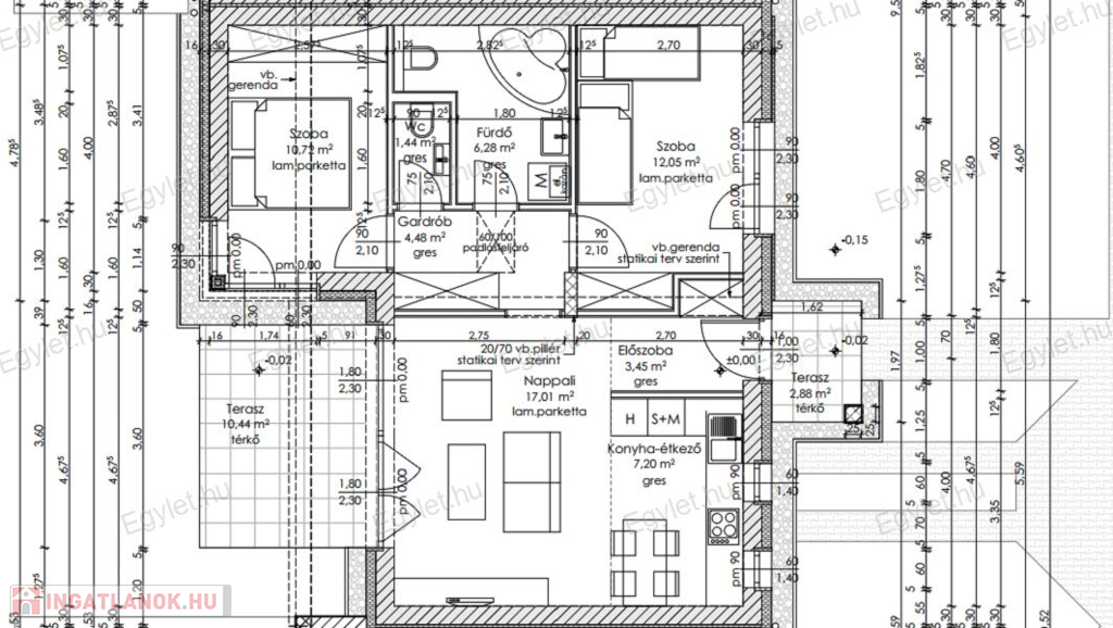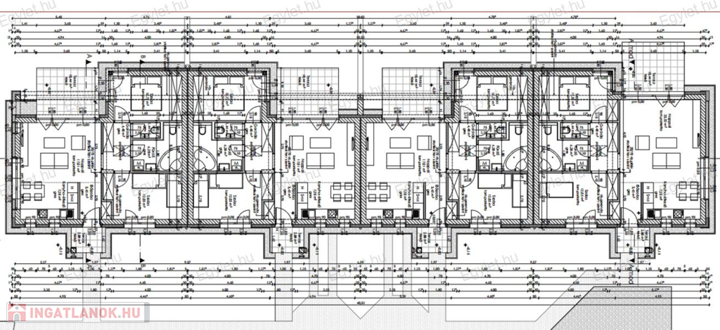 Összesen négy lakás található ebben a sorházban 61-80 nm közötti méretben, valamint 180-344 nm privát telek méretekkel.