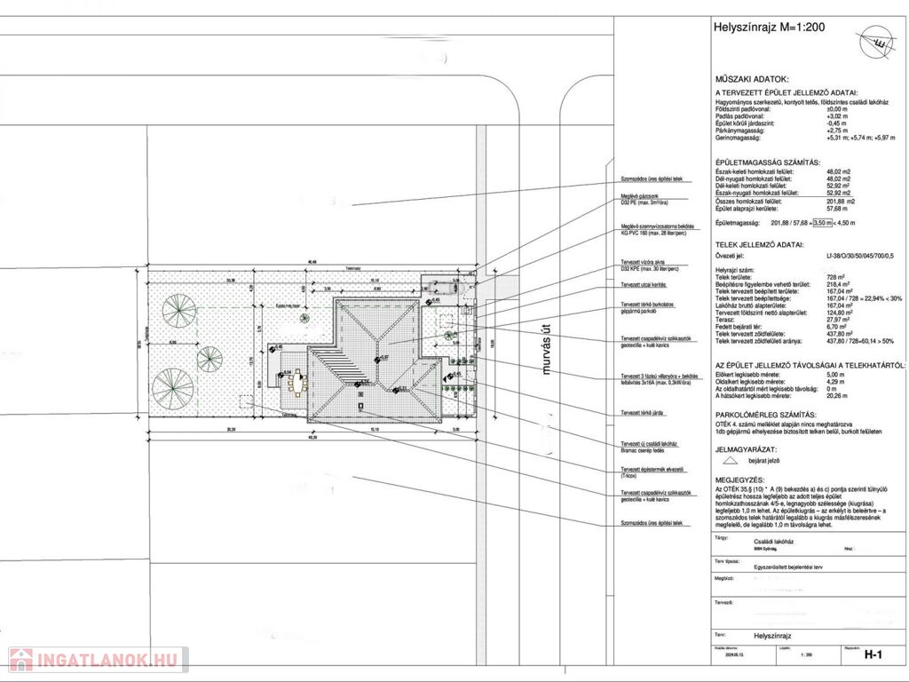 A ház egy 728 m2-es telken 3 oldalról már körbe kerített, füvesített telken helyezkedik el.