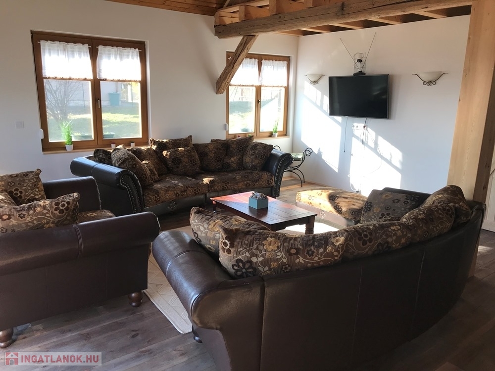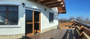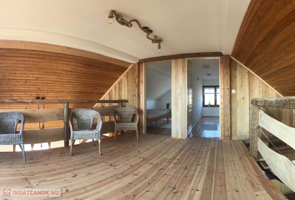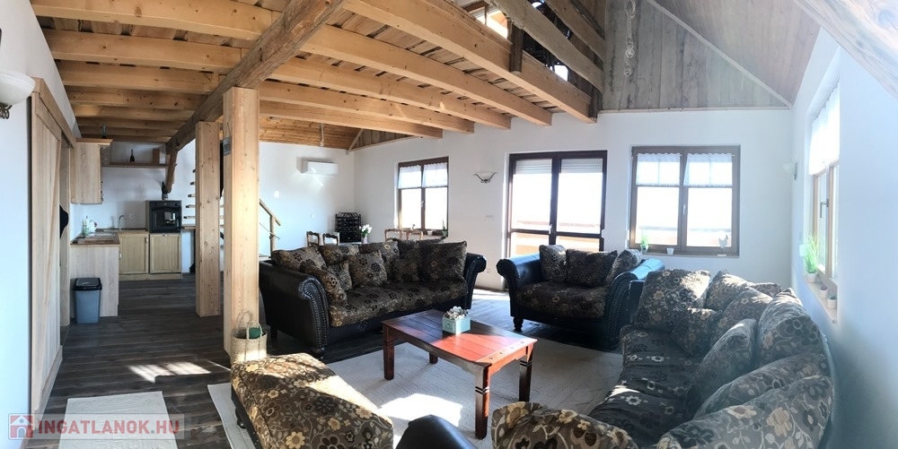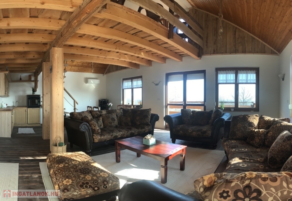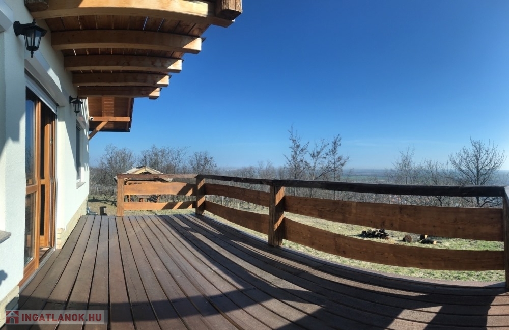 Győrújbarát festői szépségű, Pannonhalmi Apátságra tekintő csendes részén, nyugodt környezetben, 2206 m2-es telken lévő, amerikai konyha – étkező – nappali + 3 hálószobás, 95 m2 hasznos alapterületű, kiváló állapotú, KLIMATIZÁLT családi ház/hétvégi ház/nyaraló/zártkert, 22,26 m2-es TERASSZAL, 6,18 m2-es ERKÉLLYEL, 20,53 m2-es kétállásos fedett gépkocsi beállóval és PÁRATLAN, PANORÁMÁS kilátással eladó.