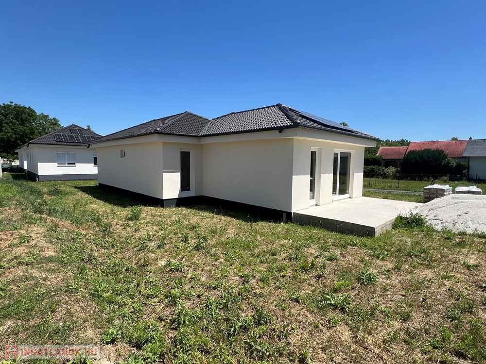 Győrzámoly csendes, kedvelt, átmenőforgalommentes családi házas övezetén, nyugodt lakókörnyezetben, 703 m2-es, széles UTCAFRONTÚ, 30%-os beépíthetőségű építési telken lévő, amerikai konyha – étkező - nappali + 3 hálószobás, különálló fürdőszobával, különálló WC-vel, továbbá kamrával, háztartási helyiséggel is felszerelt, 104 m2 hasznos alapterületű, egyszintes, új építésű, KULCSRAKÉSZ ÁLLAPOTÚ, KLIMATIZÁLT családi ház, 20,92 m2-es TERASSZAL és 1 db GÉPKOCSI BEÁLLÓVAL eladó!