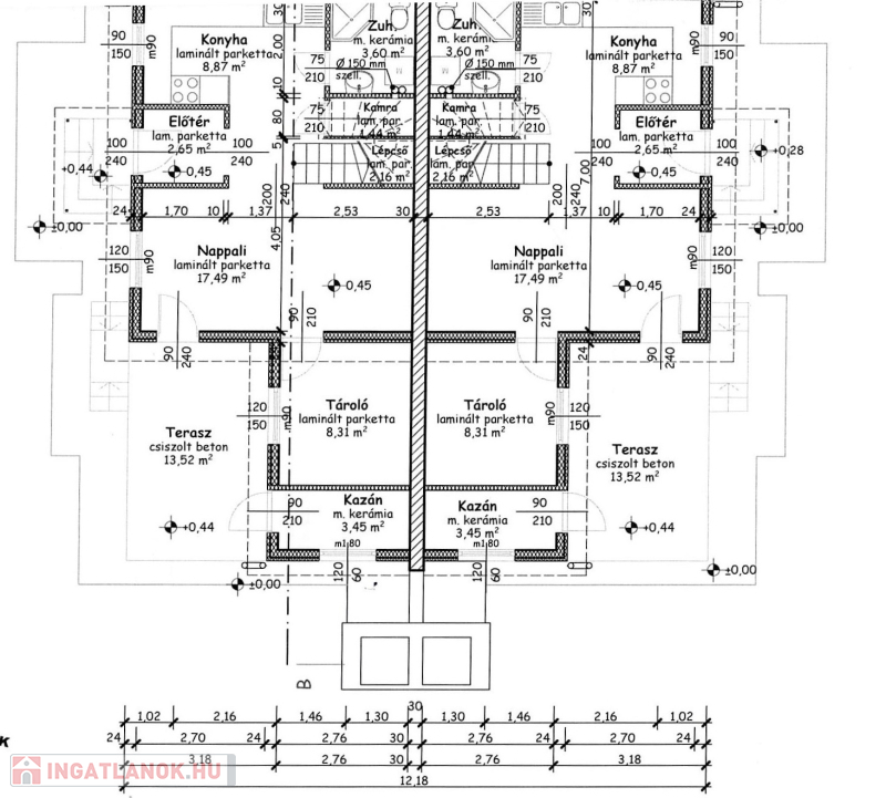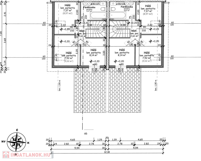 - nettó lakótér 76 m2, mely magában foglal 4 lakószobát, 2 fürdőszobát és nappalit külön