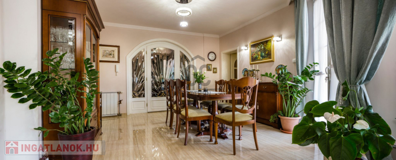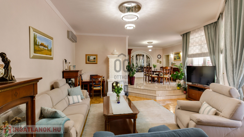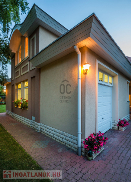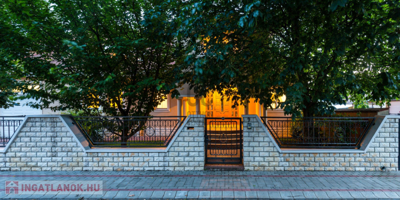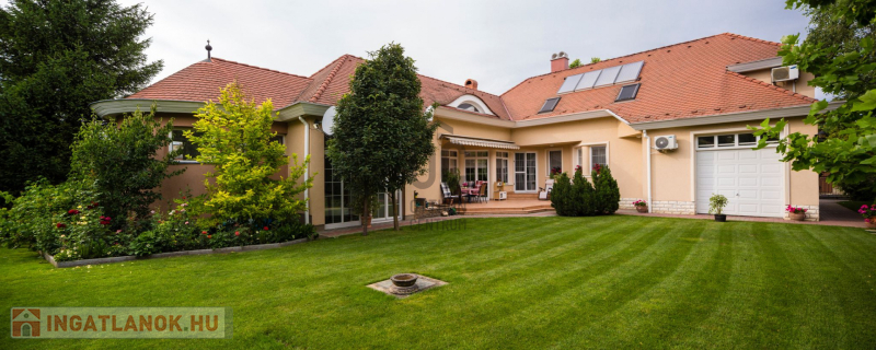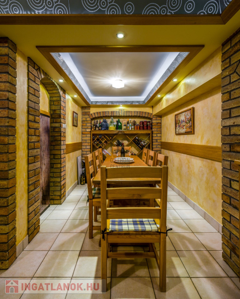 Hajdúszoboszló belvárosában eladó 1995-ben épült 416 m2 nappali+6 hálós önálló családi ház 968 m2 parkosított telken. Magas műszaki tartalommal bíró, jó elosztású, minőségi anyagok felhasználásával kivitelezett kényelmes otthonra talál ebben a házban. Nagycsaládosoknak, illetve több generációnak is kiváló választás lehet.