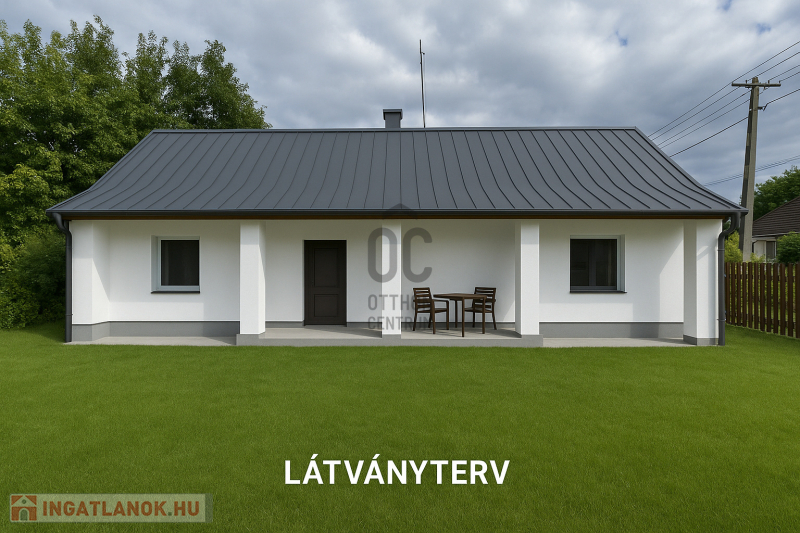50 m²-es családi ház + 10 m² fedett terasz, 1072 m² telekkel eladó.