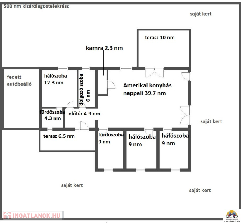Telekméret: 500 m² – saját kerttel