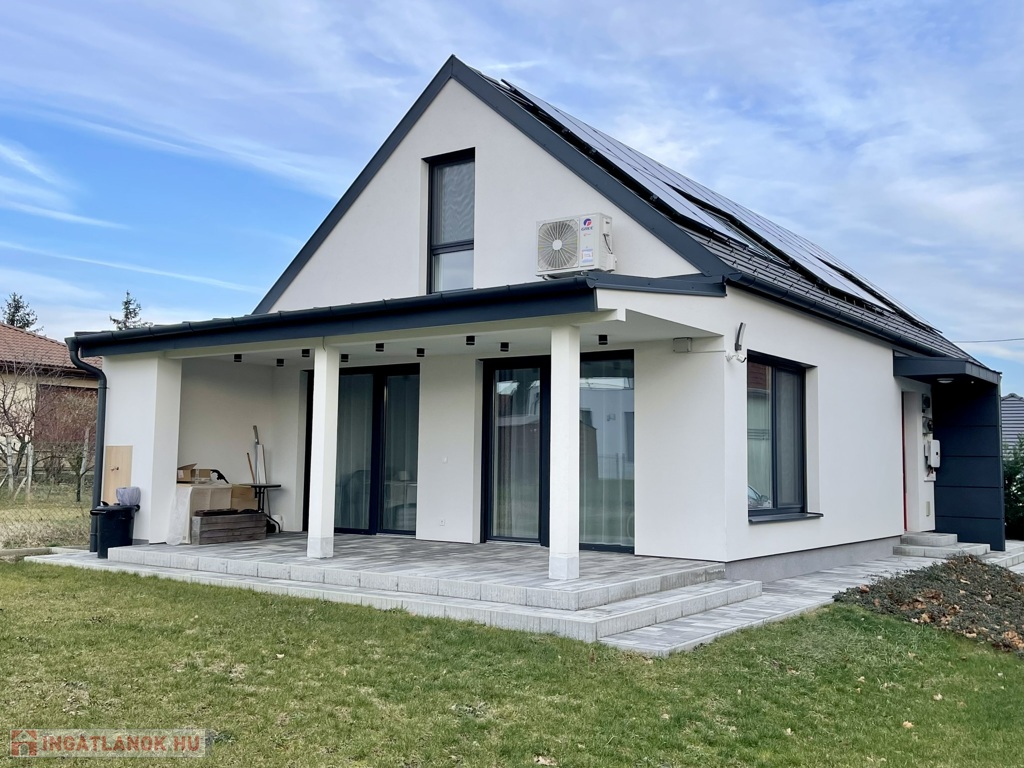 Modern technológia, kiváló energiahatékonyság, letisztult design és rendezett környezet – ez a ház készen áll arra, hogy új tulajdonosa azonnal birtokba vegye!