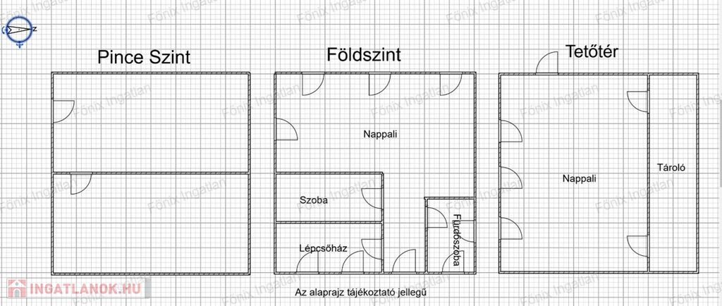 - Méret: 3 x 80 m² (pinceszint, földszint, tetőtér)