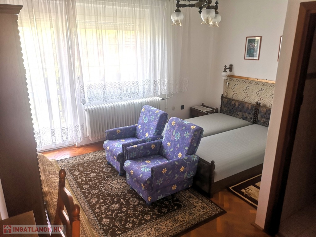 Zala vármegye, Hévíz, 195m2-es családi ház eladó. A közkedvelt zalai fürdőváros csendes utcájában, ám a központhoz mégis közel található, a 70-es évek elején épült, majd a 2000-es években emeltet kapott ingatlan földszintjén 2 szoba, 2 fürdő, konyha, nappali és terasz, az emeleten konyha, nappali, 3 szoba (melyből kettő erkélyes, illetve egy saját fürdőszobával rendelkezik), fürdőszoba és illemhelyiség, míg a tetőtérben szoba, nappali, zuhanyzó, illemhelyiség és tároló került kialakításra. Az 560m2-es telken elhelyezkedő családi ház udvarán elhelyezkedő melléképületben garázs, nyárikonyha és illemhelyiség kapott helyet. A tehermentes, részben alápincézett, légkondicionált ingatlan melegéről gázkazán gondoskodik, radiátoros hőleadókkal. A bútorozottan eladó családi ház megvásárlásához – igény esetén – díjmentesen finanszírozási megoldásokkal (pl.: Otthon Start hitel) szolgálok.
