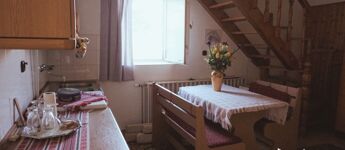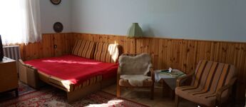 -A kisebbik lakrész 70 m2, tágas szobából, étkező-konyhából, fürdőszobából, WC-ből, előszobából és szélfogóból áll. A lakótér bővíthető a padlástér beépítésével, melyet a tulajdonosok előkészítettek egy az étkezőből induló lépcsősorral és nyílással.