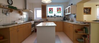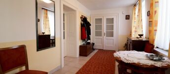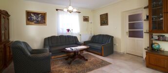Az épületbe a ~21,00 m2 alapterületű száraz-kapu bejáróból léphetünk be. Három nagy szoba, étkező és konyha, kényelmes előszoba és világos közlekedők jellemzik az épületet. A főépülethez kapcsolódó melléképületben még egy felújítandó garzonlakást is találunk, kialakított fürdővel, konyhával, szobával, jó szerkezeti állapotban. Még két melléképületet, kazánházat, betonozott teraszt találunk a dél-nyugati tájolású parkosított udvaron.