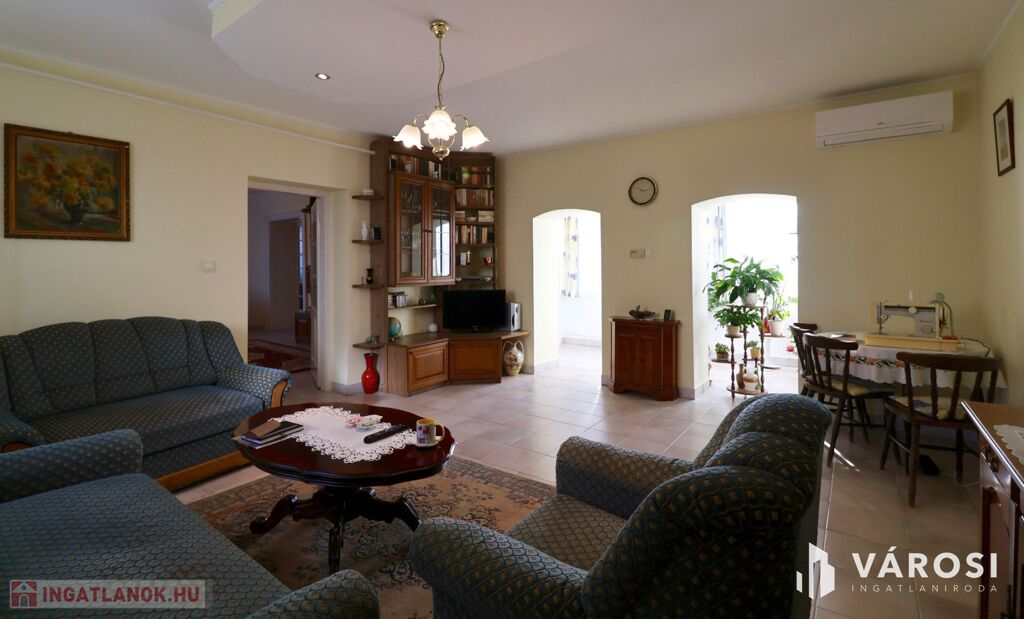 Eladó ~142,00 m2 alapterületű, vegyes falazatú családi ház a belvárosban. Az épület 1960-as évek elején épült, elegáns nagy terekkel, szép belső ajtókkal. 2000-ben a korszerűsítés során kicserélték a padlóburkolatokat, és a villamos hálózatot. 2015-ben új külső nyílászárók és új fűtőtestek kerültek beépítésre, álmennyezet került minden helyiségbe.