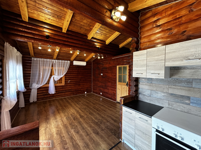 Hosszúpályiban, Debrecentől 20 km-re eladó, 50 nm-es, nappali + 2 szobás, klímás, zsindely tetős, igényes rönkház, 2400 nm-es telken, 35 nm-es terasszal, napelem előkészítéssel, kertben fúrott kúttal eladó.