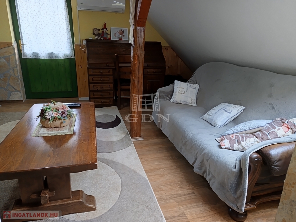 a.) Kisebb (60 m2) családi ház, mely vendégházként működik és 4 fő fogadására alkalmas. Fűtése kandallóval vagy inverteres klímával oldható meg.