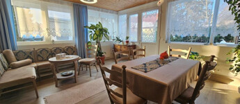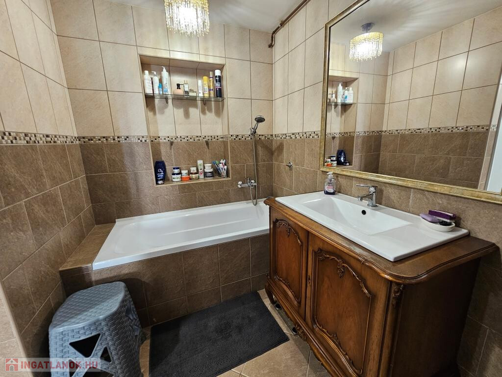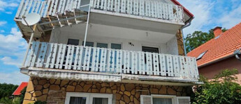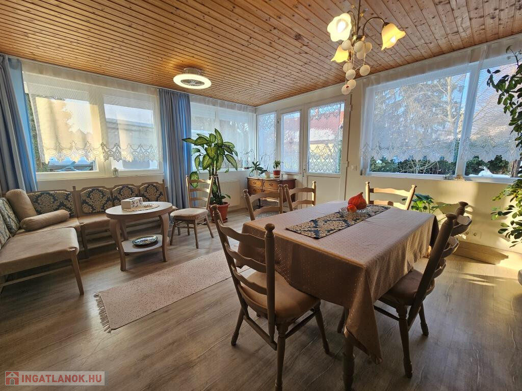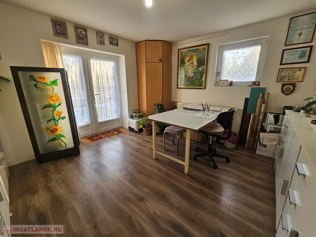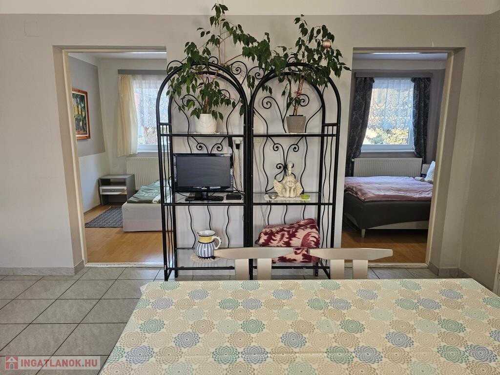 Igalban a gyógyfürdőtől 5 perc sétára kínálunk megvételre két, egymással kertkapcsolatban lévő házat. Az egyik egy szépen felújított háromszintes lakóépület, ahol mindhárom szinten ki van alakítva egy-egy önállóan megközelíthető lakrész saját konyhával és fürdővel, így külön is használhatók, kiadhatók. A földszint helyiségei: nappali étkezővel, terasszal, közlekedő, ahonnan minden nyílik, konyha, kamra, fürdő, külön WC, mosókonyha, tároló, egy hálószoba, és egy tágas előtér, ami jelenleg alkotó műhely is egyben. Alapterülete 77 m2. Az első emelet helyiségei: étkezős nappali konyhafülkével, erkéllyel, fürdő WC-vel és két háló. Ez a szint 43 m2 plusz a 11 m2-es erkély. A legfelső szint az előzőhöz hasonló elosztású, csupán kicsit kisebb, 40 m2-es, amihez 8 m2-es erkély tartozik. A teljes lakóterület tehát 160 m2. Ez az épület állandóan lakható, használható, fűtése cirkós, külső nyílászárói hőszigeteltek, műanyag keretesek. A hozzá tartozó telek 285 m2. A másik épület a kerten keresztül, de önállóan is megközelíthető, kétszintes, jó állapotú, hétvégi ház megjelölésű, egyben használható. A földszintre kellemes, tágas fedett, növényzettel körül vett teraszról lépünk be az étkezős nappaliba. Van még itt két hálószoba, konyha, fürdő, külön WC és egy kis közlekedő. Az emeletre a nappaliból vezet a lépcső, fent szintén ki van alakítva egy nappali, két háló, és itt is van fürdő, külön WC. A teljes alapterület 81 m2, plusz a terasz kb. 15 m2. Itt központi fűtés helyett a földszinten van egy kandalló, illetve elektromos radiátorok állnak rendelkezésre szükség esetén a hűvösebb időkben. Ez az épület ezért jelenleg inkább a melegebb szezonban használható, bár a külső nyílászárók itt is hőszigeteltek, műanyag keretesek. Megoldható az állandó kihasználhatóság, lakhatóság is. A telek 329 m2-es. Mindkét telek (összesen: 614 m2) szépen karbantartott, parkosított. Csendes, nyugodt utcában fekvő, bejáratott vendégkörrel rendelkező 4 szálláshely (lakótér összesen: 241 m2, teraszok, erkélyek: 50 m2) remek elhelyezkedéssel a Balaton és Kaposvár között, a neves gyógyvíz városában! Az előzőekkel összefüggő telek vásárolható még hozzá.
