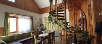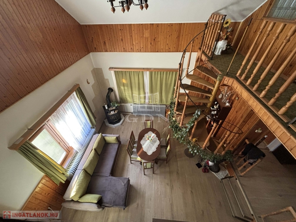 A tetőtérben nappali, 2 szoba és fürdőszoba található.