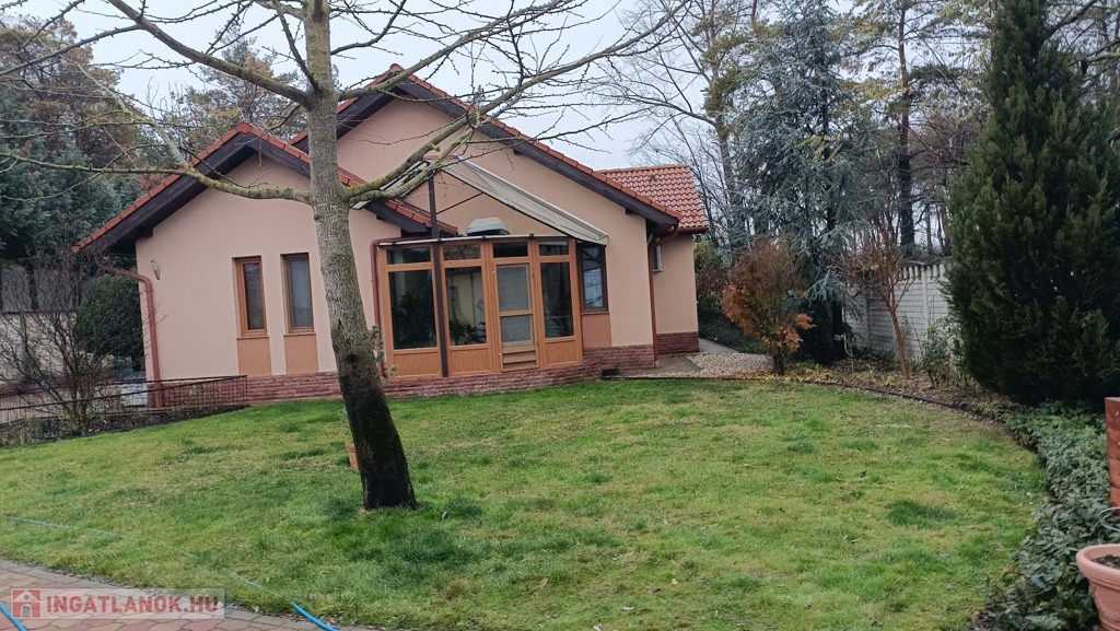 Eladó modern, energiatakarékos családi ház csendes, természetközeli környezetben! 170 m²-es, téglaépítésű, 15 cm szigeteléssel és vasbeton födémmel készült ingatlan, 3 szobával, amerikai konyhás étkező–nappalival, valamint 2 fürdőszobával (egyikben szauna). A fűtést padló- és radiátoros rendszer biztosítja, kondenzációs gázkazánnal és faelgázosító kazánnal. A házhoz tartozik 36 m²-es garázs, 50 m²-es pince, valamint egy kb. 20 m²-es melléképület. Extrák: hővisszanyerős szellőztető, napelem, napkollektor, központi porszívó, központi klíma, parafa parketta, fúrt kút, automata öntözőrendszer, esővízgyűjtő tartály, elektromos kapuk, automata áramfejlesztő. Kiváló választás azoknak, akik egy korszerű, jól felszerelt, nyugodt környezetben lévő otthont