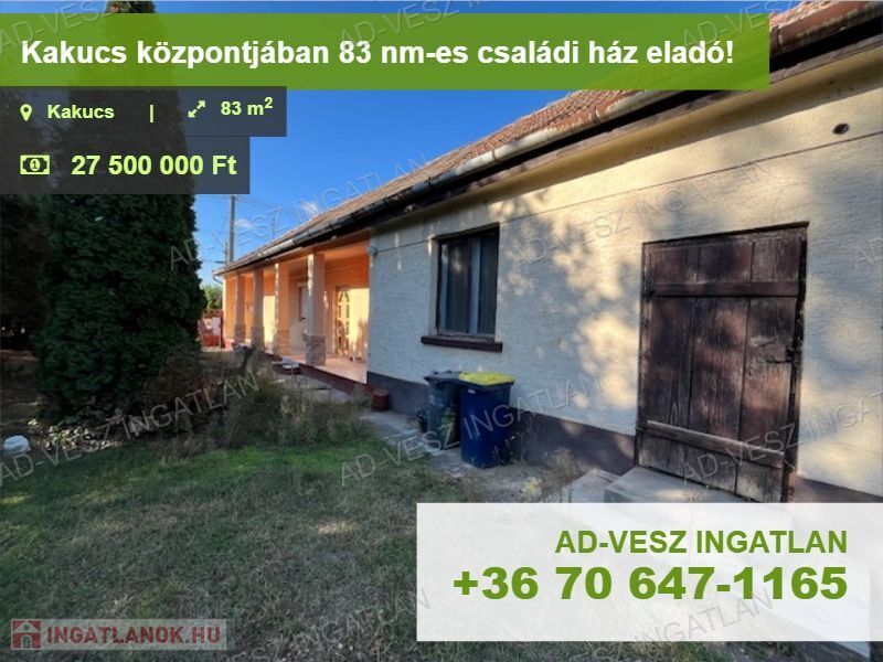 Eladó Kakucs központjában egy 83m2-es felújítandó gangos családi ház 663m2-es telekkel!