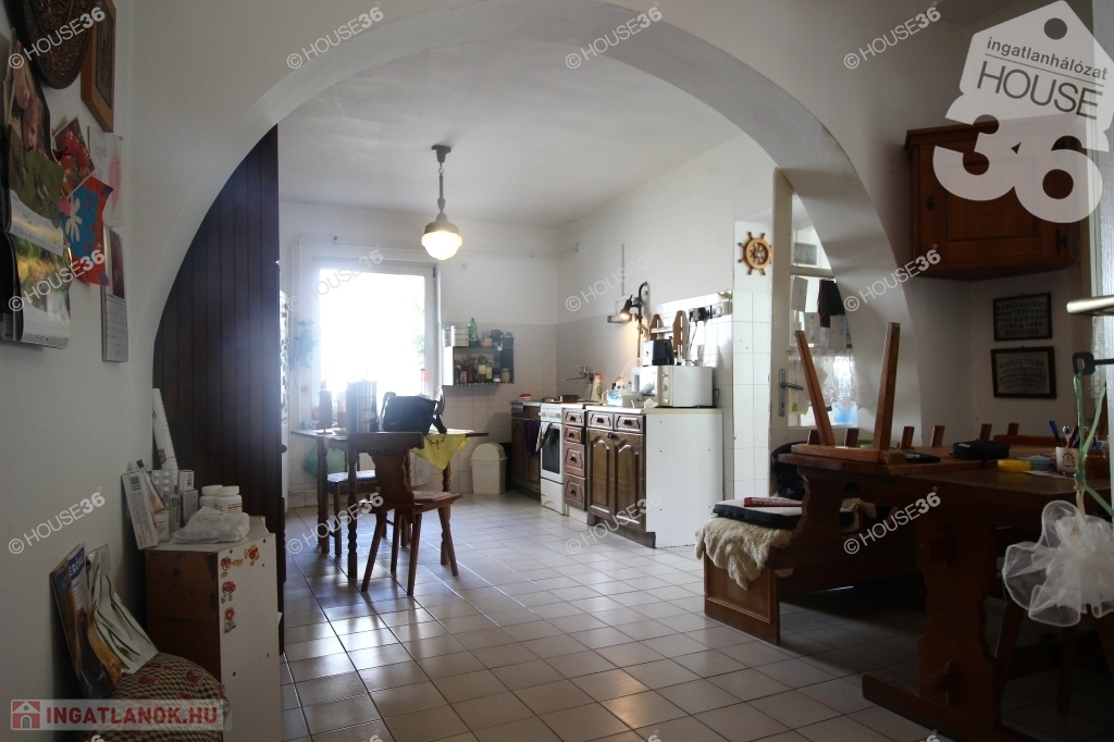 A második, kb. 106 m2-es, felújítandó lakrész: két nagyobb méretű szoba, tágas étkező és konyha, külön fürdőszoba és wc.