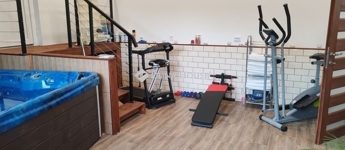 Különálló wellness épület szintén hatalmas ablakfelülettel, ledes, csillagos égbolttal rendelkezik. Beépítésre került egy különálló wc, egy esőztetős zuhanyzó, 4 személyes (bluetooth-os, két motoros) jakuzzi és egy infraszauna. Az épülethez közvetlen napozóterasz tartozik.