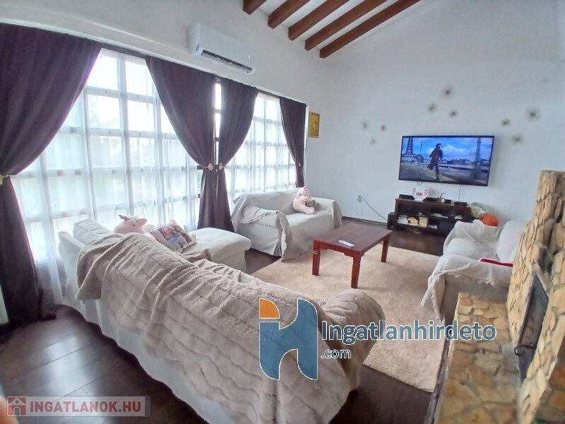 Elhelyezkedése: Belterület Tájolása: Dél-nyugai tájolású Állapota: Jó Komfort besorolása: Dupla komfortos Építési éve: 2005 Alapterülete: 240 m2 Telekterülete: 1 800 m2 Szobák száma: 3 + 1 szoba Közművek: Gáz, Víz, Villany, Csatorna Gázellátás: Vezetékes Vízellátás: Vezetékes víz Melegvíz-ellátás: Gázkazán Áramellátás: 230V Fűtés módja: Gáz Fűtés típusa: Cirkó Homlokzat állapot: átlagos Építési mód: Tégla Tető formája: Magas Tető anyaga: Cserép Parkolási lehetőség: Telken Kilátás: Utcafronti kilátás, Udvari kilátás Napelem: Nincs Jellemzői: Csendes környék, Jó közlekedés, Redőny, Légkondicionáló, Étkező, Udvari terasz, Amerikai konyha, Beépíthető tetőtér, Beépített szekrény, Beépített konyhabútor, Autóbeálló, Kert, Kerítés, Riasztó, Parketta burkolat, Medence, Saját fúrt kút, Térkő, Zöldterület, Jó közbiztonság, Beépített tetőtér Energetikai besorolás: Nincs adat Egyéb jellemzők: Erkély, Terasz, Melléképület, Pince, Tetőtér Tv, Internet: Kábeltévé, Internet, Vezetékes telefon Közelben: Iskola, Óvoda, Autóbuszállomás, Helyi autóbuszállomás, Orvosi rendelő, Bolt, Gyógyszertár, Autópálya Rezsi költség(Ft): 70000 Terhelések: Tehermentes ingatlan Eladásra vonatkozó információk: Az ár tartalmazza a teljes berendezést, Azonnal beköltözhető