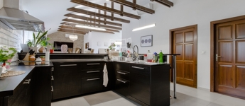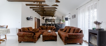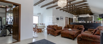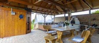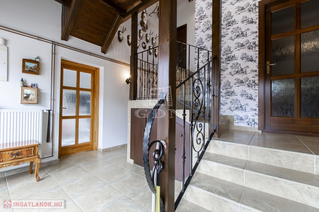 Belsőterek rendkívül ötletesen és ízlésesen vannak berendezve, gépesített IKEA konyhabútor, számos beépített gardrób, illetve cipősszekrény, gépesített mosókonyha áll rendelkezésünkre. Kikapcsolódásért nappaliban házimozi rendszer, az udvaron pedig fedett kerti konyha (épített grill, kemence, bográcsozó) és wellness (szauna, hatalmas jakuzzi) részleg áll rendelkezésünkre.