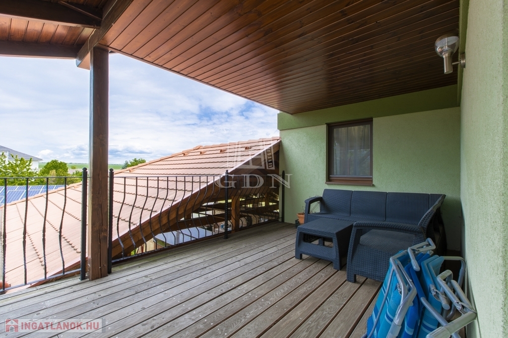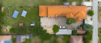Az ingatlan megközelítése elektromos kapun történik, biztonságért riasztó illetve kamera rendszer felel.