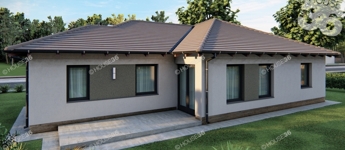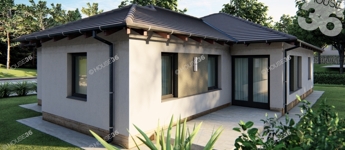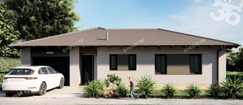 Földszintes kialakítású családi ház, nettó 129,18 nm hasznos lakótérrel, +13,33 nm terasszal, valamint egybeállós garázzsal.