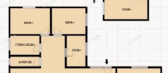 1 nagyméretű szoba / akár ketté osztható/ + 2 szoba+ 1 kis szoba+ mosókonyha
