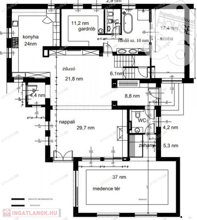 -burkolt beltéri medence (terasz-és nappali felé) még befejezésre vár, hozzá zuhanyzó-és wc