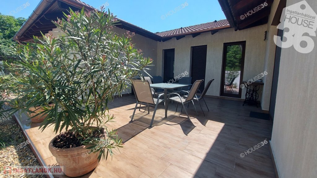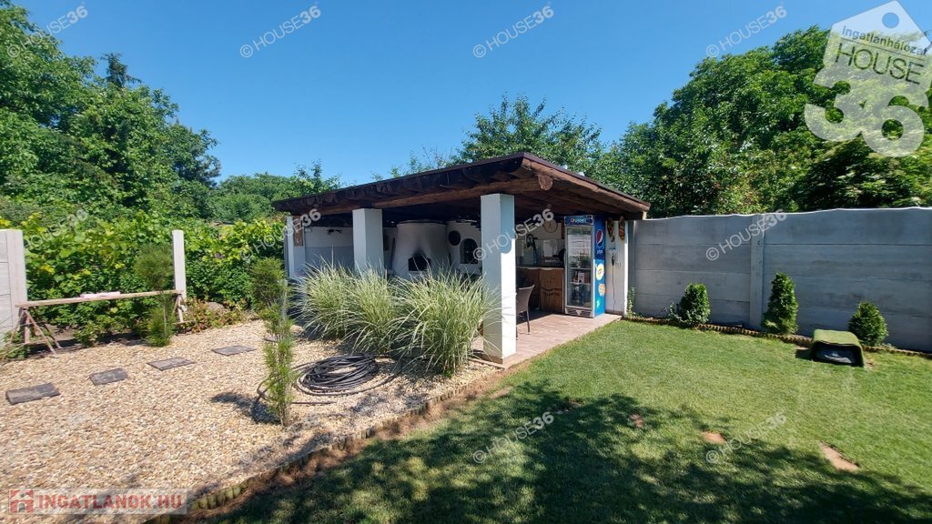 -burkolt 26 m2-es terasz, 12 m2-es melléképület + sütögető, bográcsozó, épített kemence