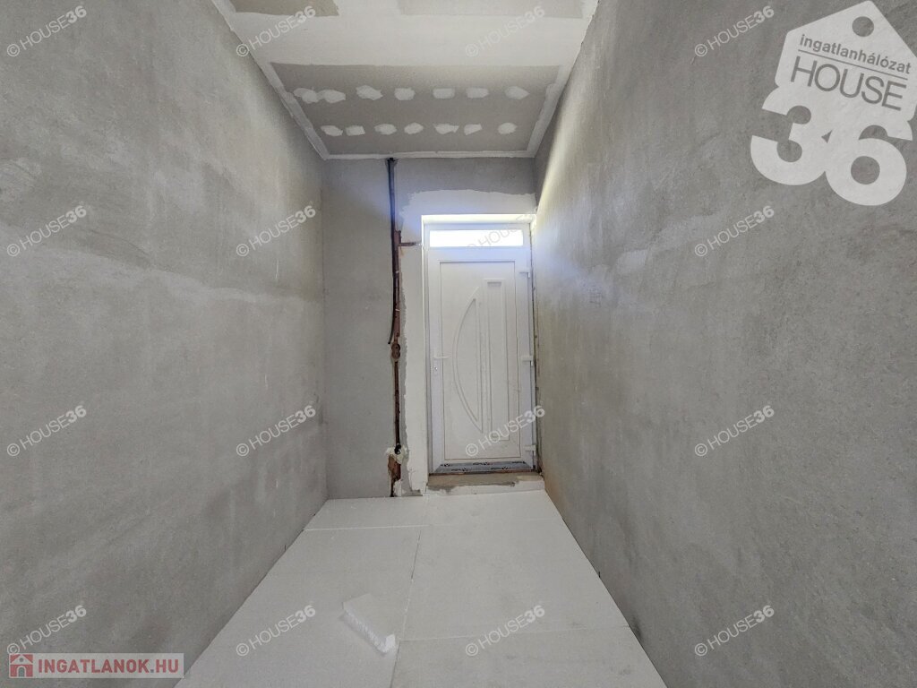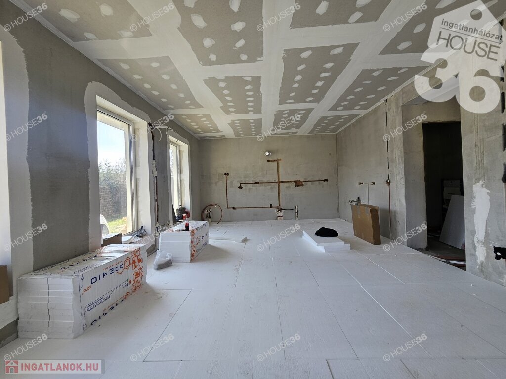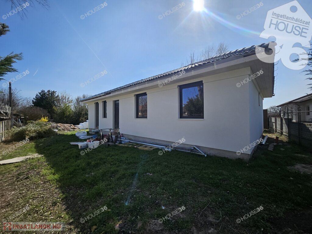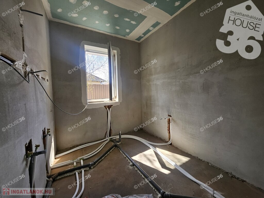 Kecskeméten, a Hunyadiváros újépítésű részén, aszfaltozott utcában, hátsó, nyeles, osztott telken (használati megosztással), 519 m2-es, teljesen körbekerített telken, 95,69 m2-es, nappali + 3 szobás családi ház, 2026 nyári átadással eladó! Jelenleg a ház már tető alatt áll, gépészeti-és burkolási munkák folynak.