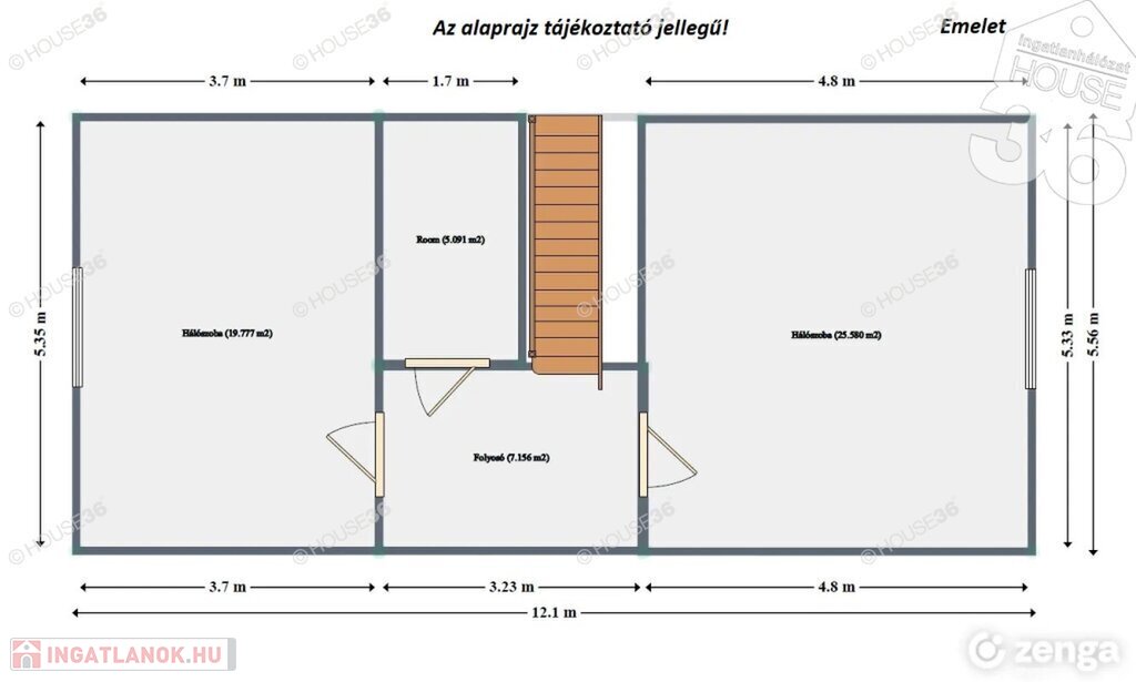 Emelet: 2 külön nyíló szoba, igény szerint külön fürdőszoba is kialakítható, ami tovább növeli a komfortot
