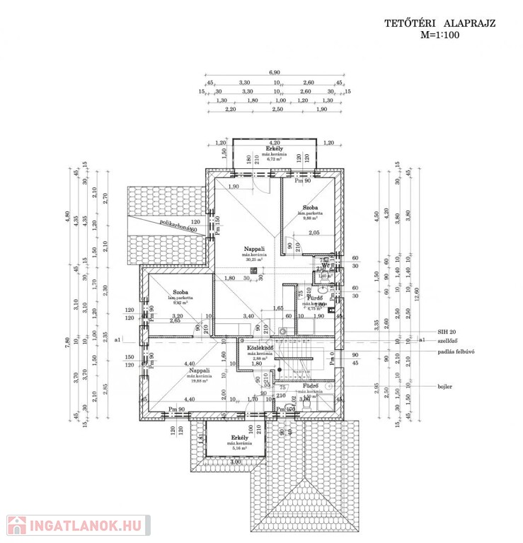 3. A ház 2020-ban készült 30-as Porotherm falazóblokkokból, melynek nettó lakótere összesen 168 m2, plusz garázs 19,56 m2, alsó terasz 20,49m2, emeleti terasz 12,39 m2.