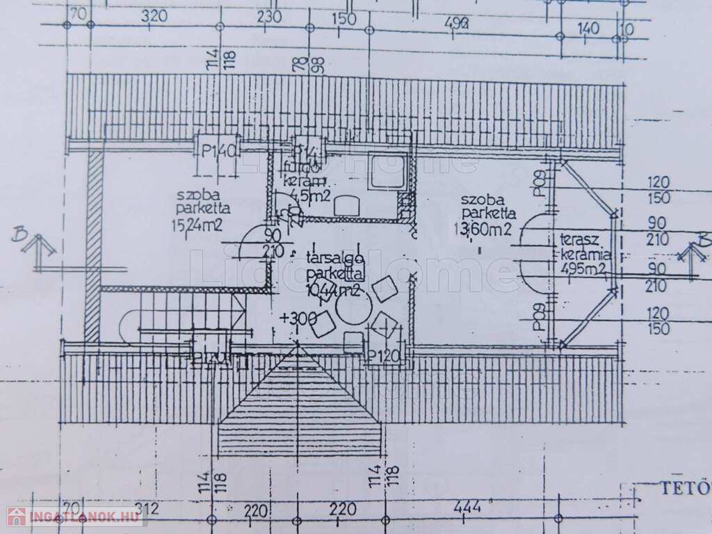 - tetőtér: közlekedő, társalgó, 2 szoba, fürdőszoba + WC, természetre néző erkély