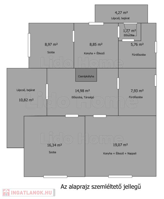 - világos, nagy, kényelmes terek mindkét lakrészben