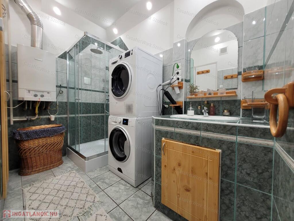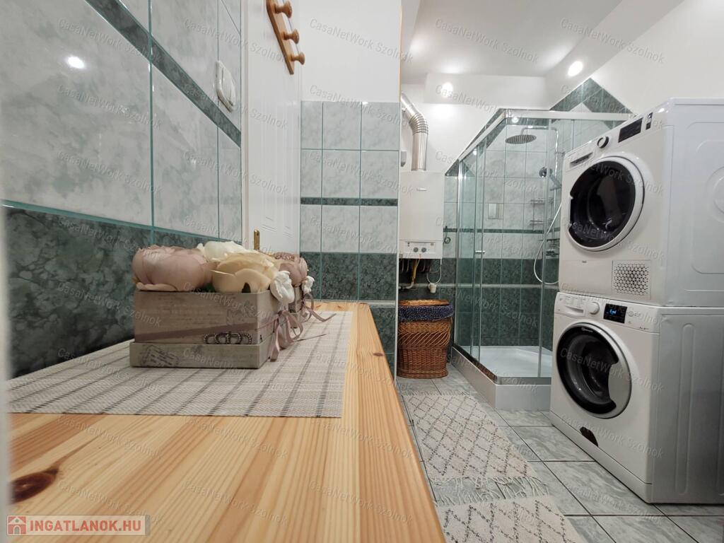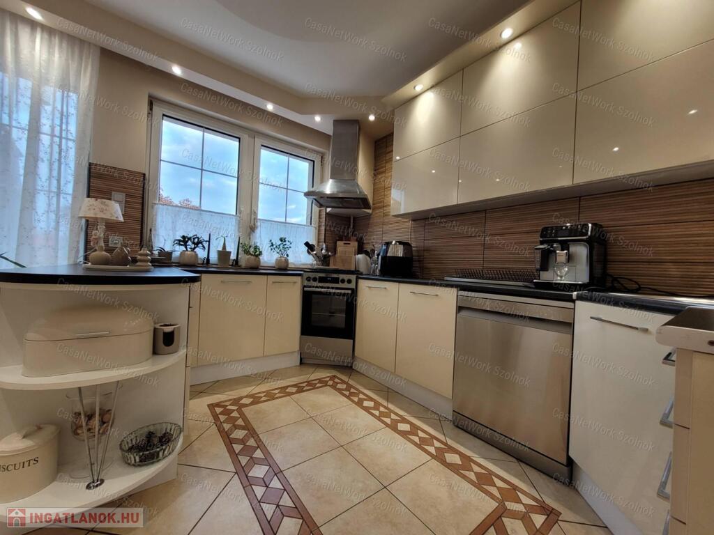 Modern villanyhálózat, spotvilágítás, 15 cm hőszigetelés, hőszigetelt nyílászárók, cseréptető, padlófűtés, gázkazánnal, hűtő-fűtő klímák, riasztórendszer.