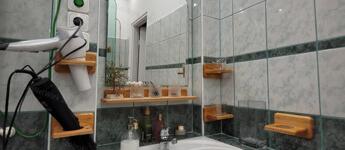 A HÉV-megálló mindössze 7 perc sétára, mégis nyugodt, békés környezetben található.