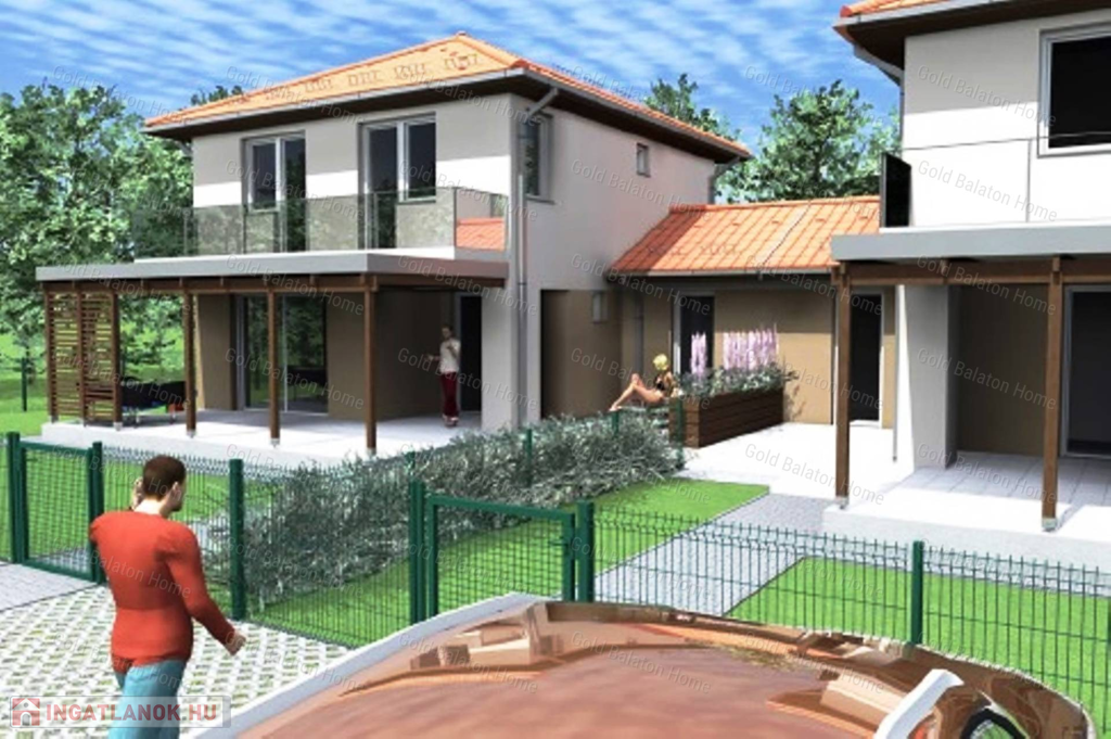 Kétszintes nívós IKERHÁZAK rendezett udvarral, a Hévízi-tótól 3 500 méterre, a Balatontól 4 500 méterre.