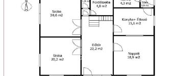 Beosztása praktikus: A tágas előtérből két szoba, konyha, nappali ( nyitott a konyhával-étkezővel ), egy kis előtéren keresztül a fürdőszoba és a WC érhető el. A konyha mellett kamra és a hátsó udvarra nyíló ajtó található. Az előtérben látható lépcső a padlástérbe vezet. A déli fekvésű bejárat előtt hangulatos fedett terasz van, melynek környezetében kerti sütő is kialakítható. Udvara tágas, sok lehetőség rejlik még benne. ( kültéri gyermekjátékok, medence...stb )