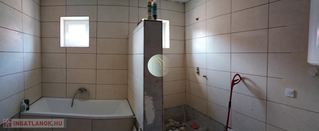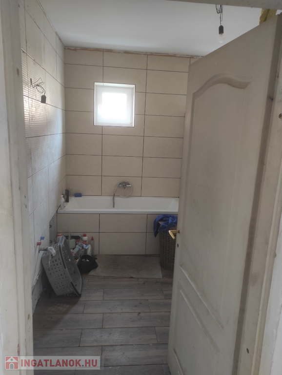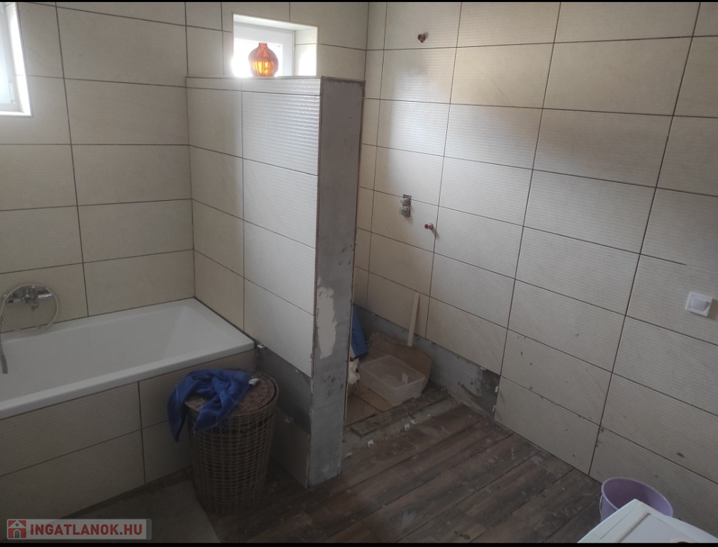 A tágas fürdőszoba teljes felújítása során, egy épített zuhanyzó és kád került kialakításra. A víz és villanyvezeték teljes cseréje a tavalyi évben megtörtént.