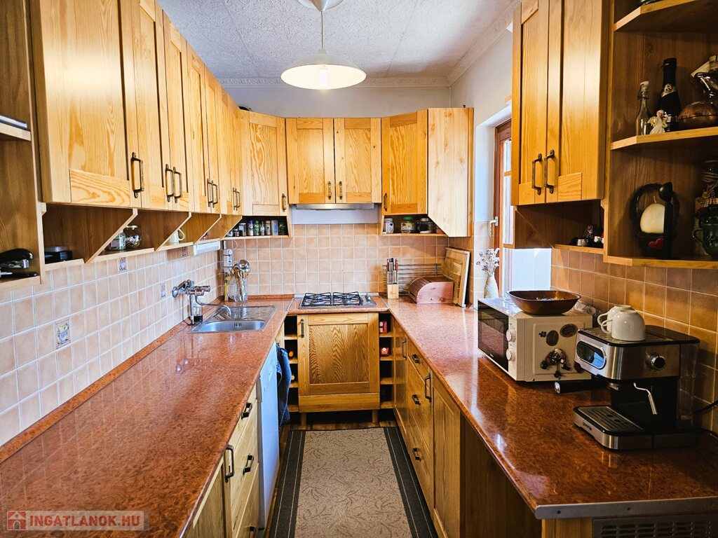 A porotherm téglafalazatú épület kiváló elosztású, fűtését vegyestüzelésű kazánnal működő központi fűtés biztosítja.