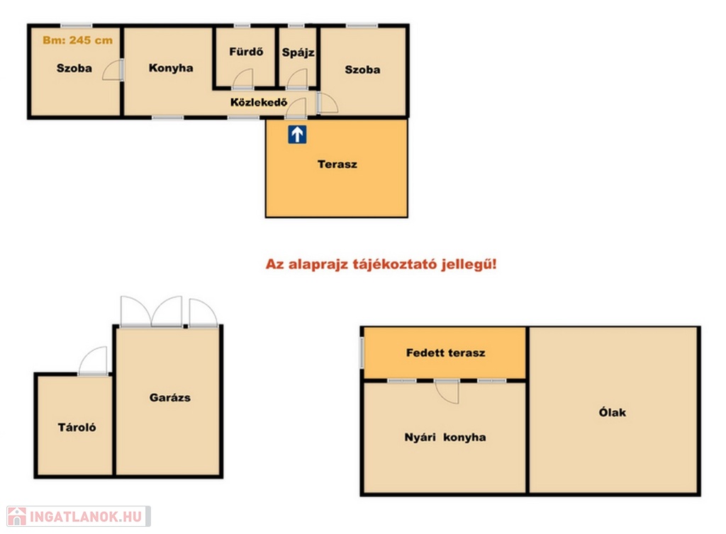 - Melléképület: garázs, nyári konyha, tároló, ólak