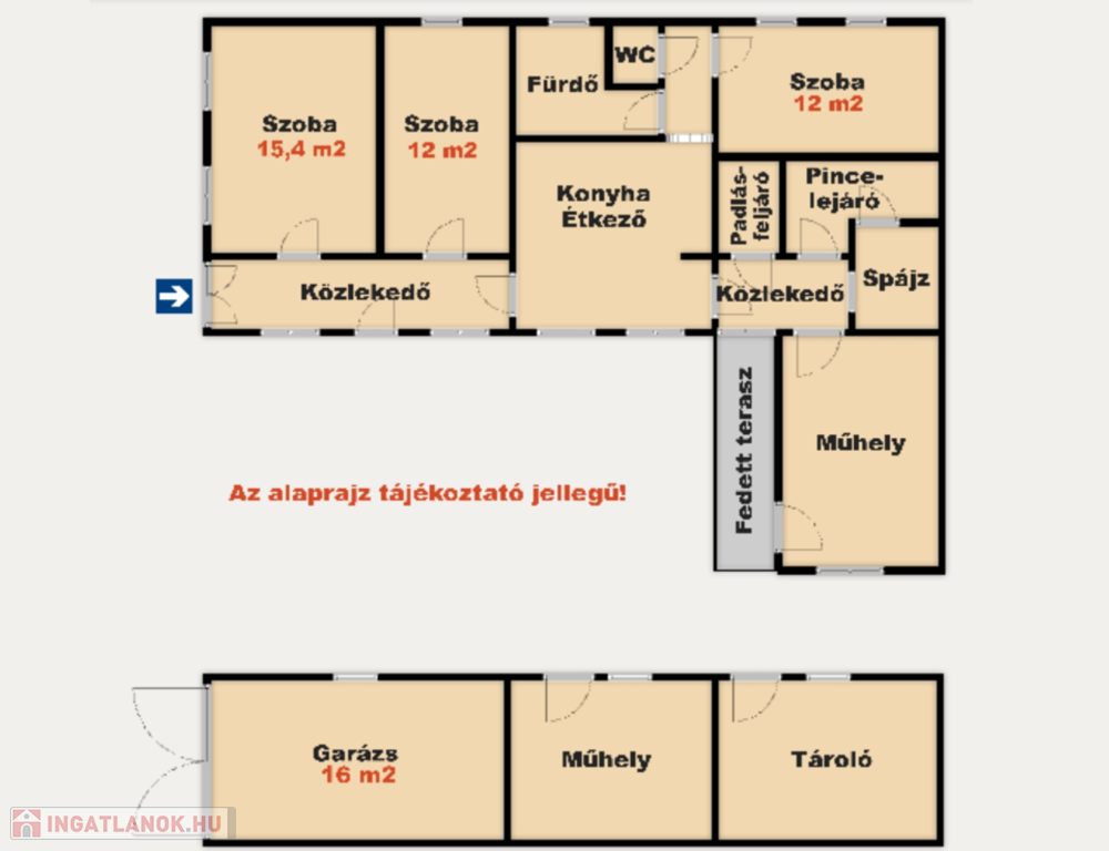 - Parkolás: Garázsban 16 m2