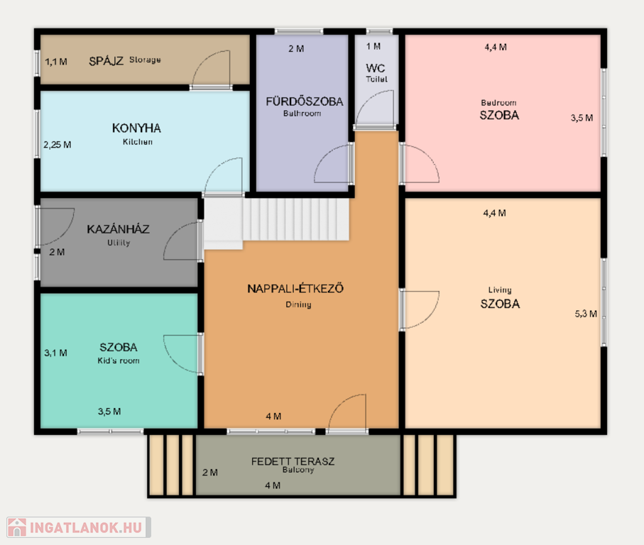 - 3 db hálószoba (10,5 m2, 23,30 m2, 15,40 m2)