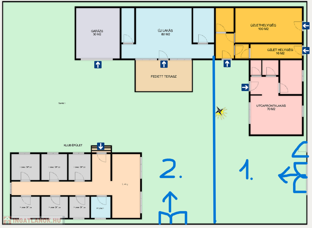 Kiváló lehetőség vállalkozások működtetésére de újra gondolva 2 lakóingatlan kialakítására is alkalmas.