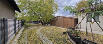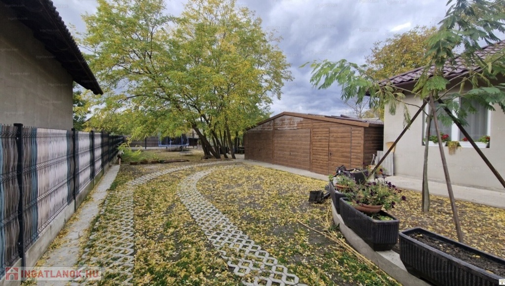 Az udvarban kétállásos garázs, több autóbeálló, valamint fúrt kút is helyet kapott.