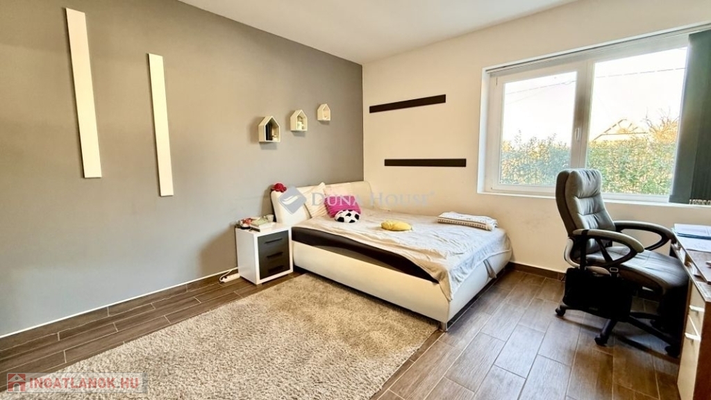 Kiszombor szívében igényesen felújított családi ház eladó! Ide tényleg csak költözni kell. Kiszombor központjában, Szegedtől mindössze 25 percnyi autóútra, Makótól alig pár perc távolságra található, ez a 855 m²-es telken elhelyezkedő 155 m²es frissen felújított családi ház. Ideális választás a város zajából kiköltöző nagycsaládosok vagy család alapítás előtt álló fiatal párok számára!Belépve a bejárati ajtón barátságos, ugyanakkor hatalmas amerikai konyhás nappali fogadja az ide érkezőt, ahonnan fényes folyosón keresztül jutunk el a 4 db külön nyíló hálószobáig. A folyosón található fürdőben kád és zuhanyzási lehetőség is ki lett alakítva. A fürdőszoba mellet kapott helyett egy másik külön álló wc és egy kamra is, ahol az épületet fűtő padlófűtést biztosító kondenzációs kazánt rejtették el a kíváncsiskodó szemek elől. A bejárati ajtón kívül két további lehetőségünk is van kijutni a nagy odafigyeléssel rendben tartott, parkosított udvarra, amit akár két teraszról is csodálhatunk. Az épületet a tulajdonos megbízásából gondosan kiválasztott, minőségi alapanyagokból újították fel 2020 nyarától A tetőszerkezett megerősítették, és a régi cserepeket új, időtálló betoncserepekre cserélték.A ház egésze famintázatú hidegburkolatot kapott. Az alacsony fűtésszámlát a hőszigetelt műanyag nyílászárók és az egész házat körülölelő 10 cm-es szigetelés garantálják. Az épület hűtését nagy teljesítményű, gazdaságos energia felhasználású klíma biztosítja a nyári meleg napokon, ami akár plusz fűtési lehetőség ként is tud funkcionálni a téli időszakban. A környék ellátottsága kiváló, buszmegálló, bevásárlási lehetőség, pékség, bolt és a közelben található játszótér egyben sportolási lehetőséget is biztosít. Pár perces sétával elérhető iskola, óvoda és orvosi rendelő is van a falusi CSOK, CSOK+-ra is alkalmas településen. A közösségi közlekedés sűrű és egészen kiváló környéken.Amennyiben felkeltette az érdeklődését, hívjon bizalommal!