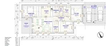 A tető héjazata betoncserép lesz, a homlokzatok 15cm EPS, a padló 10cm lépésálló, a födém 30cm ásványgyapot szigeteléssel lesz ellátva.