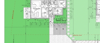 - Murvázott terasz a rajzott jelzett 15 m2 ben . Gépkocsibeálló + hozzá vezető közös út és behajtó murvázva. Térköves beálló és terasz felár ellenében kérhető.