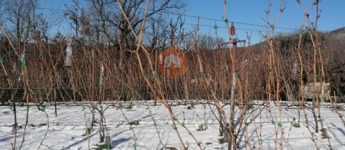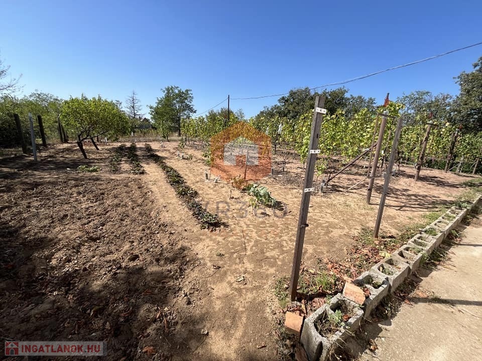 Kert: rendezett, termő gyümölcsfákkal és szőlőtőkékkel