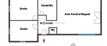 Az ingatlan 2 szoba/amerikai konyhás nappali, fürdő-WC/külön elosztású.